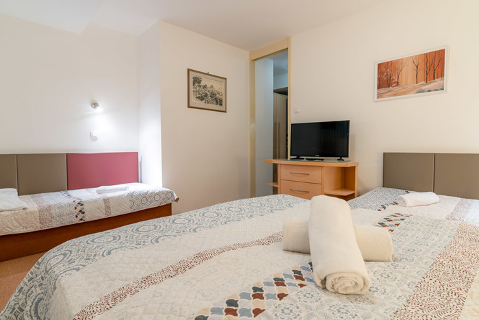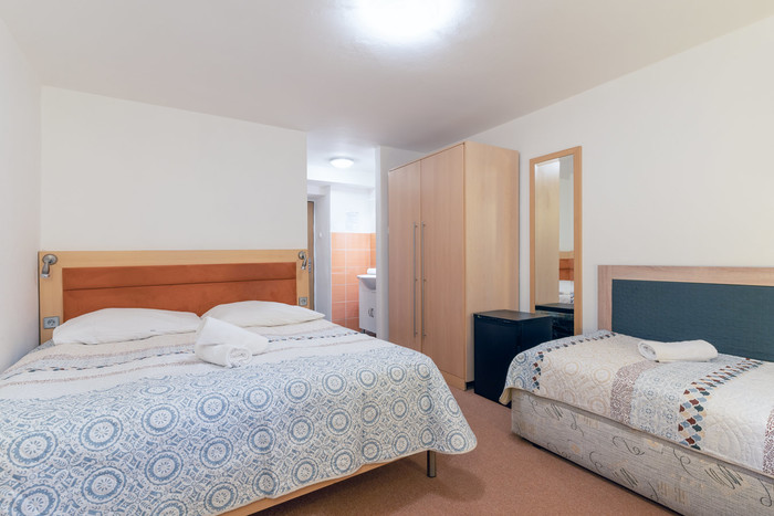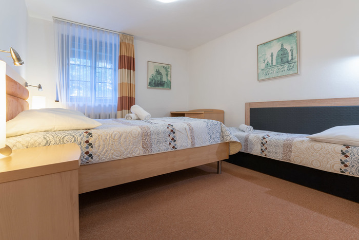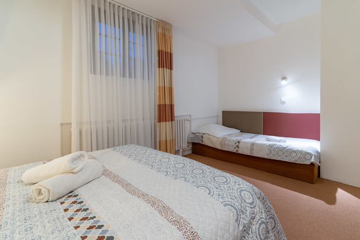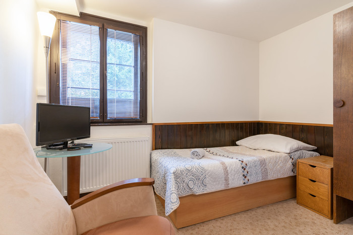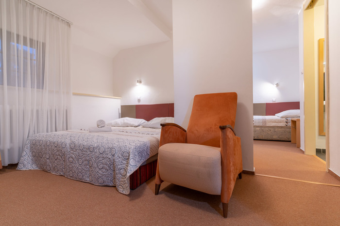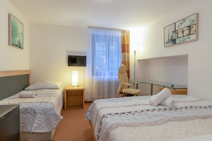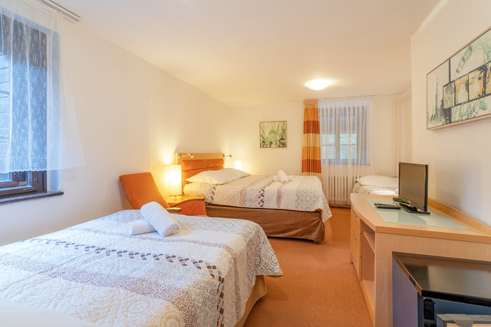 18 pokojů (70 lůžek) typu Standard se nachází v prvním a druhém poschodí. Máme pro Vás připraveny pokoje 1 - 6ti lůžkové. Jsou vybaveny vlastním sociálním zařízením (WC, umyvadlo, sprcha), TV a Wi-Fi.