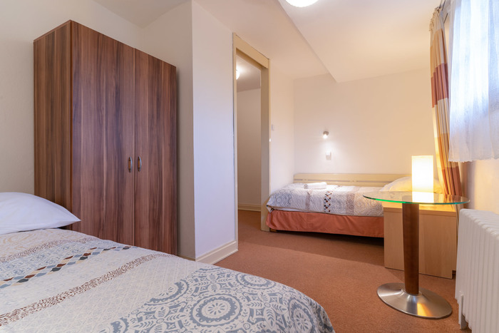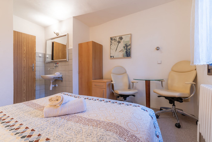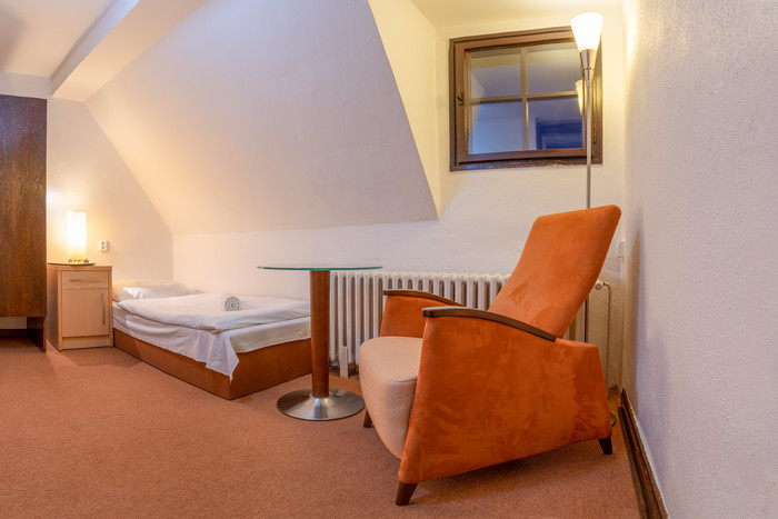 Postačí Vám turistické ubytování? Zvolte jeden z našich 8 pokojů (21 lůžek) ve třetím patře penzionu. Máte možnost 1 - 3lůžek, každý pokoj je vybaven umyvadlem. Sociální zařízení je společné (oddělené pro muže a ženy). Připojení Wi-Fi je zdarma a dostupné ve všech pokojích.